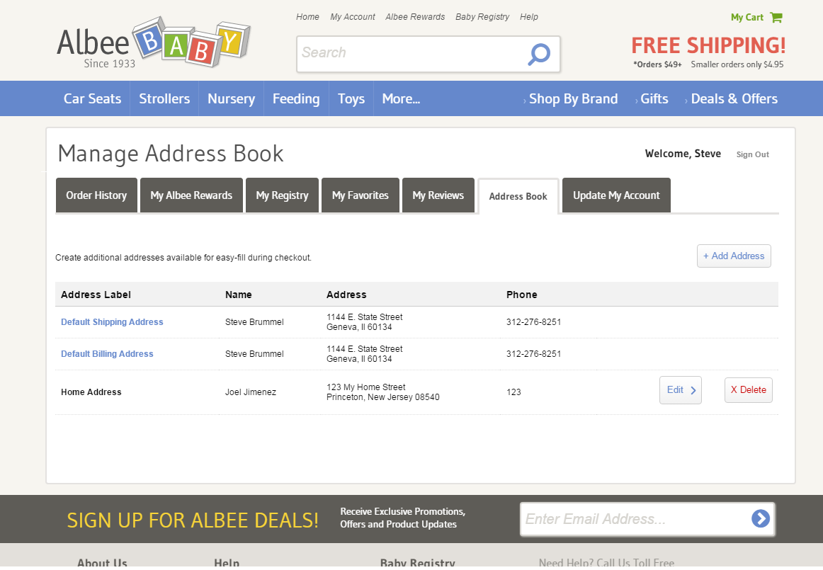 Allows customers to maintain a list of multiple addresses for pre-fill, allowing for faster checkouts.