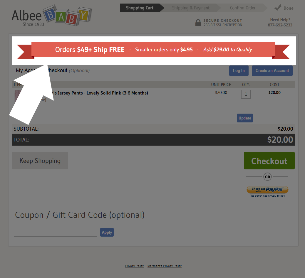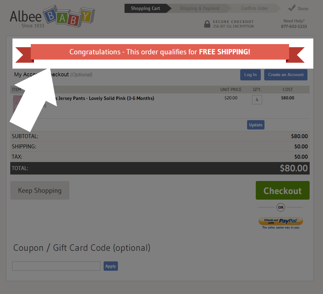 When customer's cart exceeds the set threshold (e.g. $99 ) , display a reinforcement banner This Order Qualifies for FREE Shipping! .
